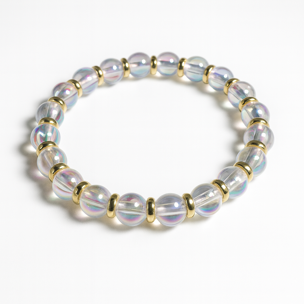 Crystal Aura Bracelet – Iridescent Glass Beads with Gold Spacers