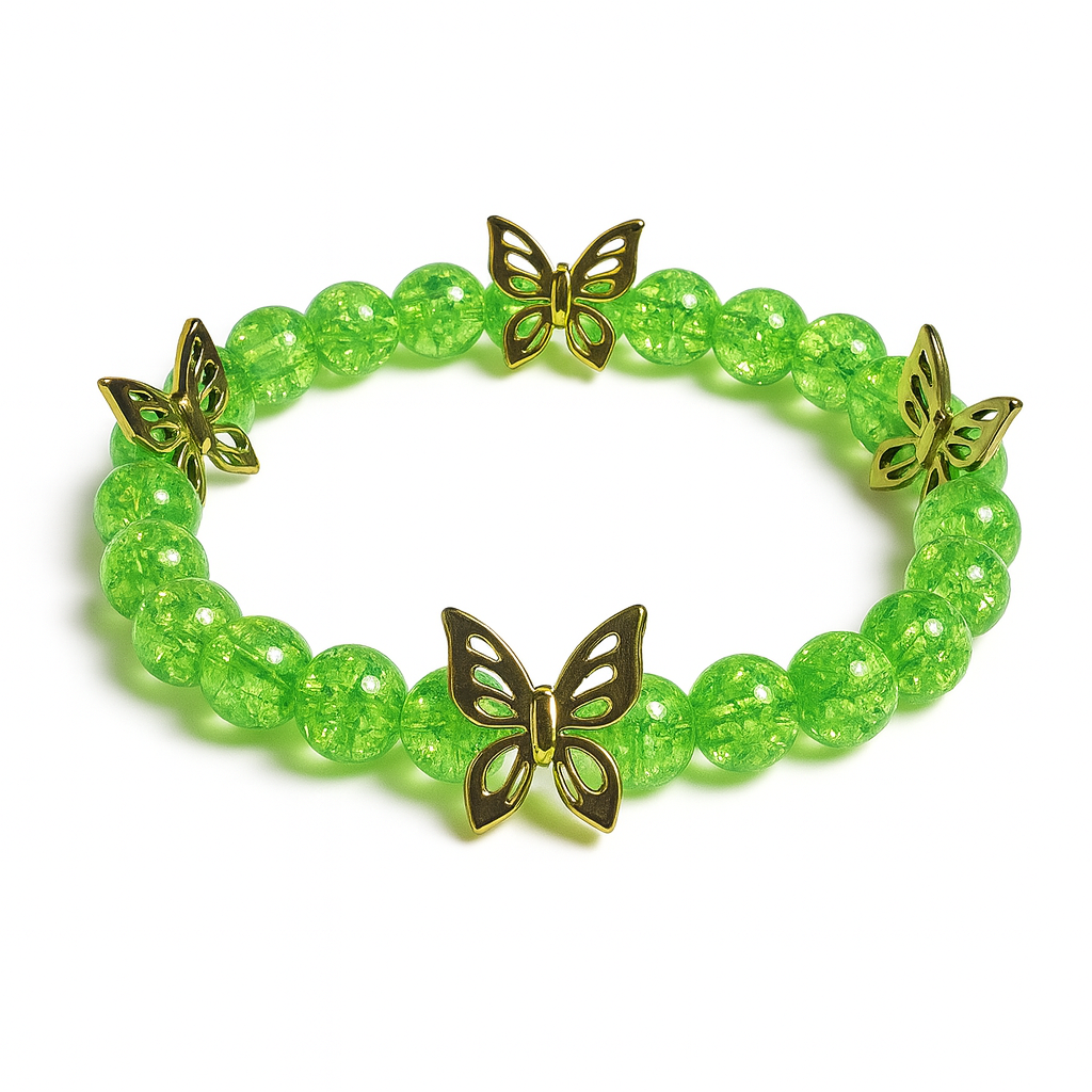 Emerald Flight Butterfly Bracelet – Green Glass Beads with Gold Charms