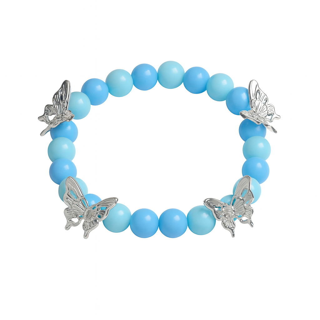 Sky Serenity Butterfly Bracelet – Blue Beads with Silver Charms