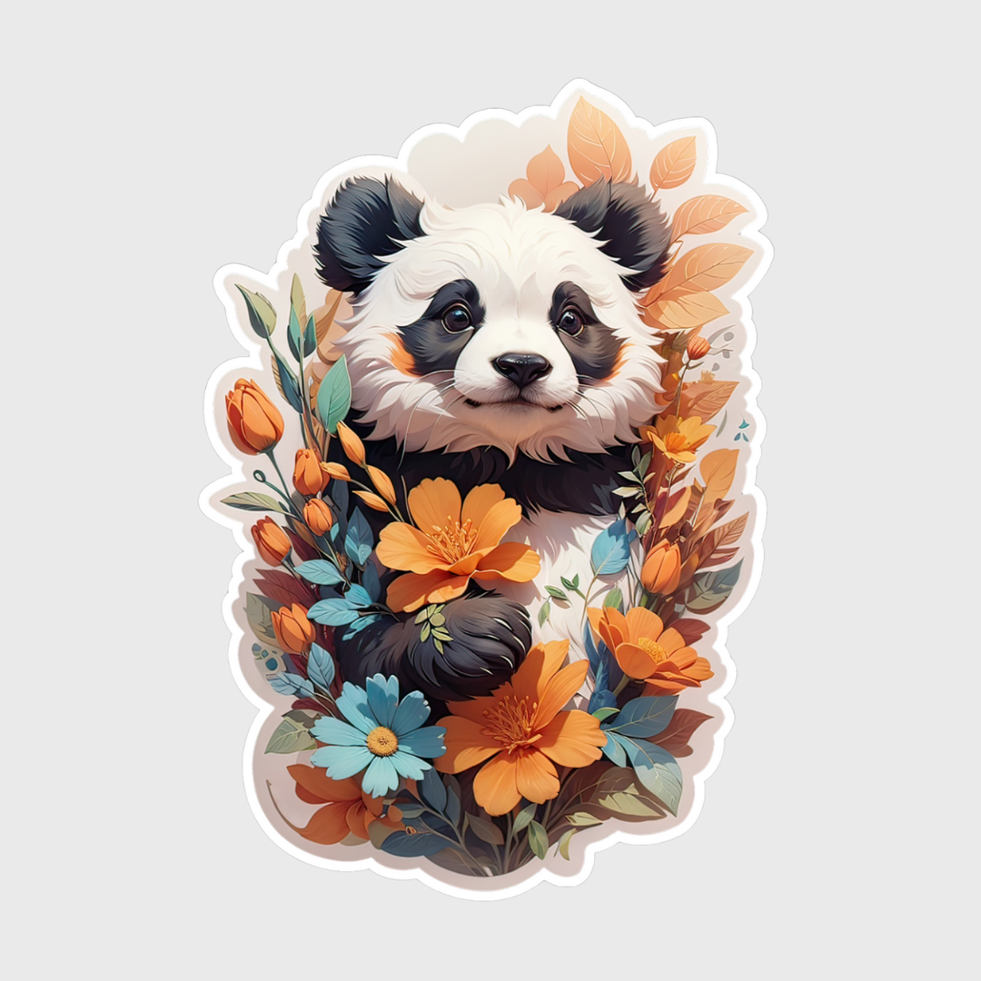 Panda with Flowers Sticker
